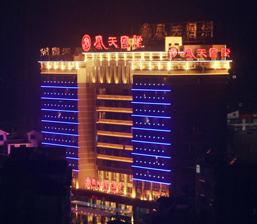 鳳凰鳳天國際大酒店總投資2.68億元,13層至尊高度。總面積30000多平方米,氣宇軒華。共有300余間豪華客房。地下停車場,會務(wù)中心,健身中心,中西餐廳,咖啡廳,等配套設(shè)施一應(yīng)俱全。集會展、旅游、休閑娛樂于一體,卓爾不凡,盡顯大家風(fēng)范。宴會廳是目前鳳凰最大,可同時容納1000人就餐。