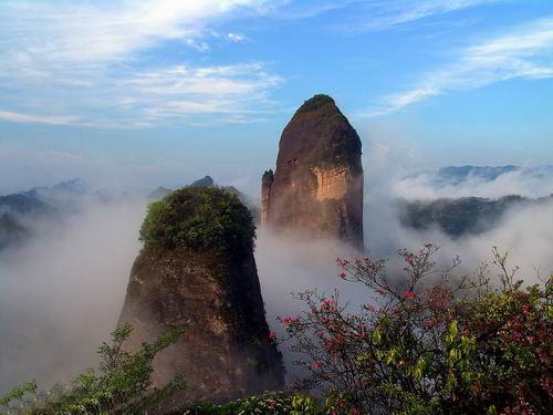 | 莨山,位于湖南省新寧縣境內(nèi)。南與桂林相連,北與張家界呼應(yīng),是國(guó)內(nèi)最為典型的丹霞地貌風(fēng)景區(qū),是國(guó)家重點(diǎn)風(fēng)景名勝區(qū),又是國(guó)家地質(zhì)公園,總面積108平方公里,轄紫霞峒、 扶夷江、駱駝峰、牛鼻寨、八角寨五大景區(qū),地質(zhì)結(jié)構(gòu)奇特,山、水、林、洞渾然一體。境內(nèi)有形神兼?zhèn)涞膶④娛⑽┟钗┬さ鸟橊劮、鬼斧神工?天下第一巷"、地造天設(shè)的鯨魚鬧海、氣勢(shì)磅礴堪稱亞洲第一的天生橋、高聳入云而又十分逼真的辣椒峰,這便是嘆為觀止的莨山六絕,這是大自然對(duì)莨山的恩賜,每一絕都舉世無雙。莨山還生長(zhǎng)繁衍著銀杉、珙桐、華南虎、云豹、靈貓、大鯢等珍稀動(dòng)植物,也為莨山的天然景色增添了無限靈動(dòng)與生氣。這里出土有10萬(wàn)年前的獼猴頭骨化石,有4500年前的新石器文化遺址,有清化農(nóng)民起義的寨堡,有晚清重臣劉坤一、劉長(zhǎng)佑、江忠源的宗祠、墓葬,有異彩紛呈的民族風(fēng)情,有膾炙人口的華采詩(shī)賦,明代縣人陳永猷留下了"夫夷(新寧古稱)勝景天成就,攝杖歸來入夢(mèng)頻"的美譽(yù),著名詩(shī)人艾青留下了"桂林山水甲天下,莨山山水賽桂林"的喟嘆。