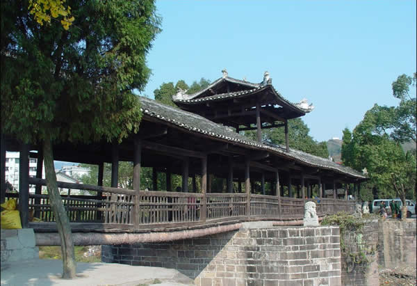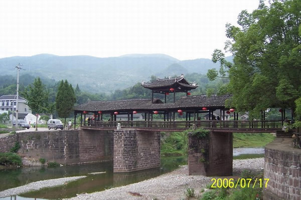 | 賀龍橋原名永安橋,是賀龍曾祖父賀廷宰首倡修建的,它是一座由石墩、木梁、騎廊組成的風雨橋。賀廷宰熱心公益事業(yè),見玉泉河“奔流湍急,道路為!,行人十分不便,于是決定修橋。由于他只是一個教私塾的文人,修橋工程艱巨,個人經(jīng)費有限,“至斥腴畝以償其負”。后來,賀龍的祖父賀良仕子代父勞,費盡心血,終于在1915年修建成功,深獲遠近鄉(xiāng)鄰稱頌。