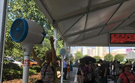 為更好的為游客防暑降溫,天門山景區(qū)特別在索道站、山門等候區(qū)增設(shè)大型遮陽棚,作為游客等候休息區(qū),并在等候區(qū)內(nèi)安裝數(shù)十個(gè)室外冷霧降溫風(fēng)機(jī)和直飲水點(diǎn)。