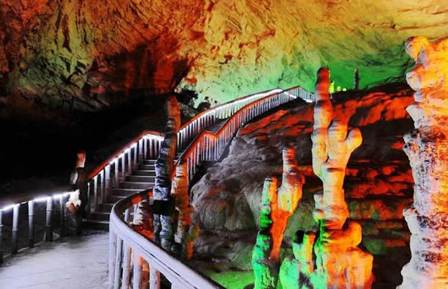 黃龍洞位于湖南省張家界市核心景區(qū)武陵源風(fēng)景名勝區(qū)內(nèi),是世界自然遺產(chǎn)、世界地質(zhì)公園張家界的有機(jī)組成部分,屬典型的喀斯特巖溶地貌,被列為國際旅游洞穴會(huì)員、全國35個(gè)王牌景點(diǎn)之一、中國首批AAAA級(jí)旅游區(qū)(點(diǎn))、中國旅游首批知名品牌、湖南省最佳旅游景區(qū)、湖南省著名商標(biāo)、張家界旅游精品線之一,享有絕世奇觀之美譽(yù)。 2005年被評(píng)選為“中國最美的旅游溶洞”。2009年,黃龍洞被評(píng)選為“中國最美的旅游奇洞”。