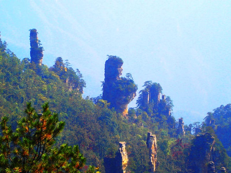 天門山十大景點(diǎn):虹索龍翔、曲道通天、天門洞開、云夢躡巔、凌霄暢遠(yuǎn)、懸梯浮嵐、木石奇緣、玄壁隱仙、丹 灶飛煙、天界佛國