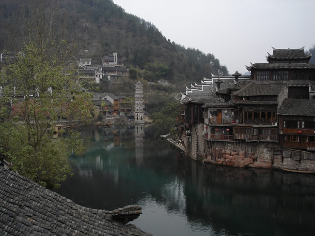 【鳳凰古城位于沱江之畔、群山環(huán)抱、關(guān)隘雄奇、碧綠的沱江依著城墻緩緩流淌,疊翠的南華山麓倒映江中,江中漁舟游船數(shù)點(diǎn),山間暮鼓晨鐘兼鳴,懸崖上的吊腳樓輕煙裊裊,碼頭邊的浣紗姑笑聲朗朗,兩岸已有數(shù)百年歷史的吊腳樓更是別有一番風(fēng)味;順?biāo)麓┻^(guò)虹橋一幅江南水鄉(xiāng)的畫面便展現(xiàn)于眼前--萬(wàn)壽宮、萬(wàn)名塔、奪翠樓……一種遠(yuǎn)離塵世的感覺悠然而生;鳳凰--猶如“一幅濃墨淺彩的中國(guó)山水畫”】,入住酒店。